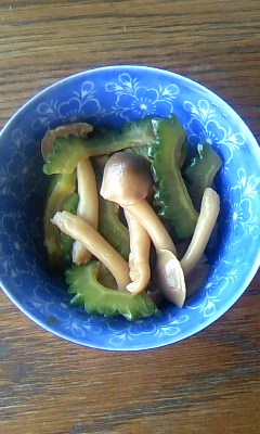 大分前に買ったぶなしめじとゴーヤをしょうゆで。